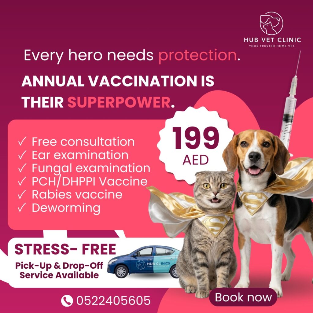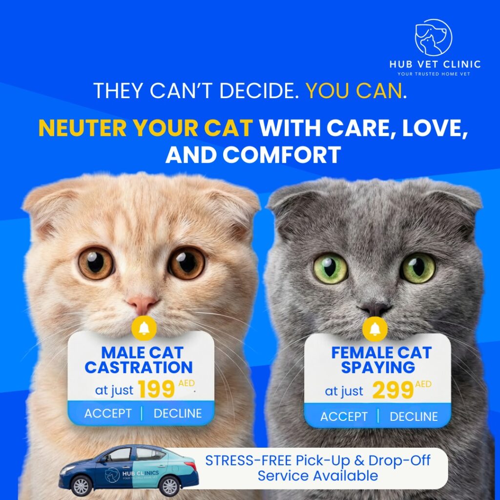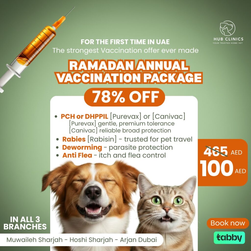 At Hub Clinics, we don’t just treat pets – we care for family members. Our veterinary hospital in Sharjah combines advanced medical technology with compassionate service to deliver the best possible outcomes. From preventive care to complex surgeries, we’re dedicated to enhancing the health and happiness of every pet that walks through our doors.